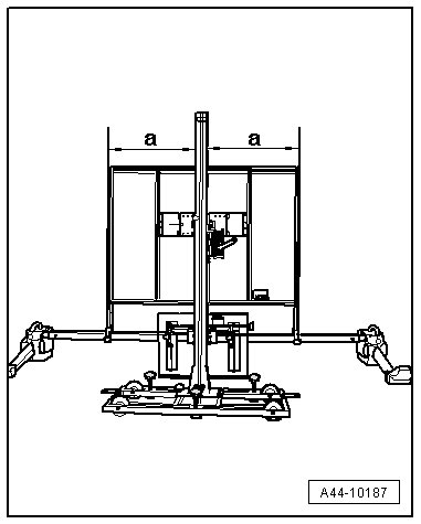 • Before driving the vehicle onto the alignment stand, check if there is a enough space between the center of the wheel hub on the front wheels and the (VAS 6430). The distance between the (VAS 6430) and the center of the wheel hub on the front wheels must be 150 cm +/- 2.5 cm.