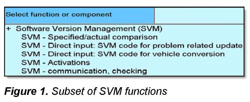 ^ After the software update is completed, an additional SVM Specified/Actual comparison will be performed to calculate a new coding and/or parameterization and to document all control unit changes as a new reference in the SVM database.