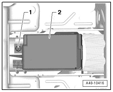 - Remove the bolt - 1 - and the electronic steering column lock control module - 2 -.
