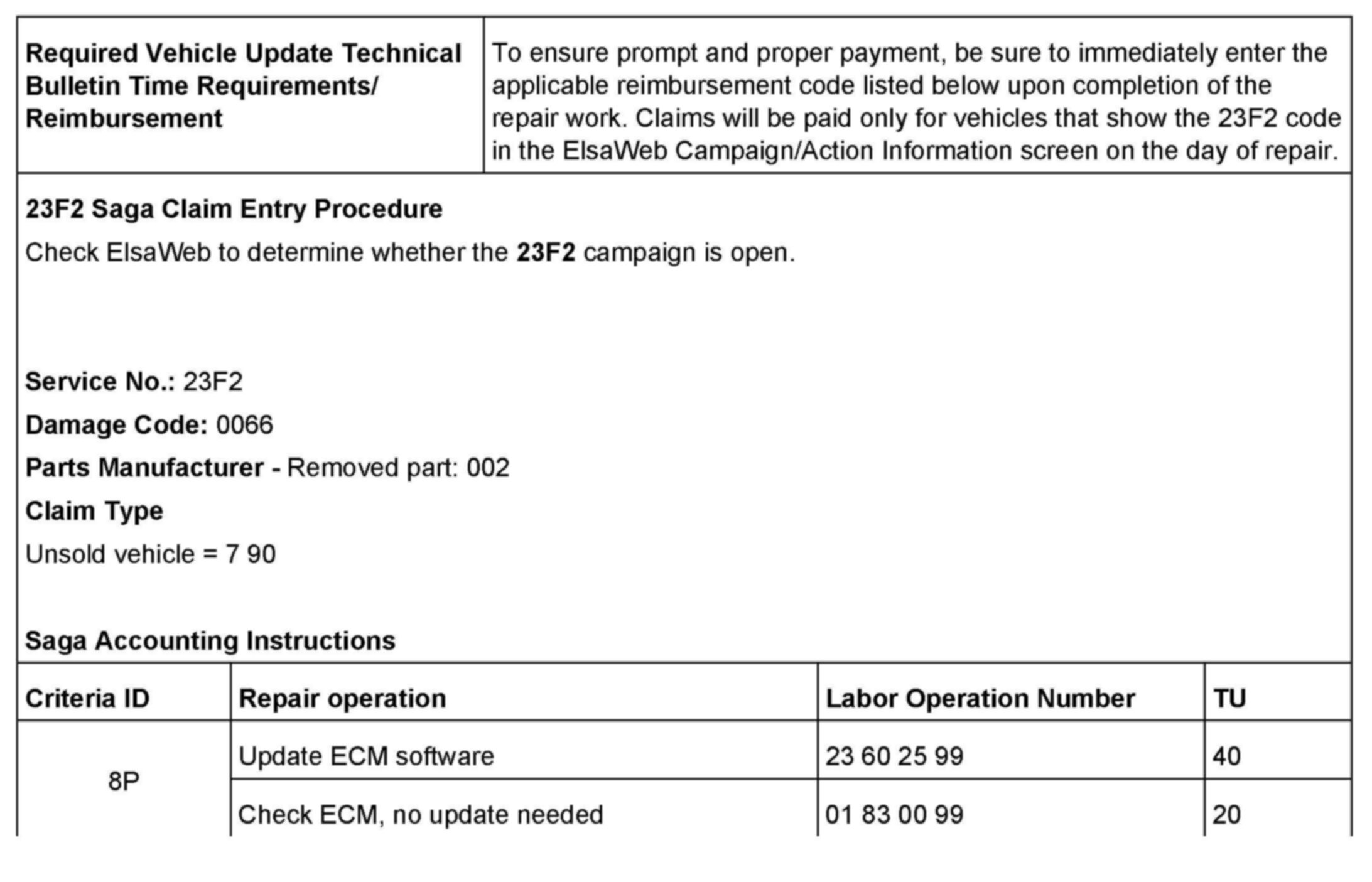 ^ Procedure is valid only for vehicles that show the 23F2 code in the ElsaWeb Campaign/Action Information screen on the day of repair.