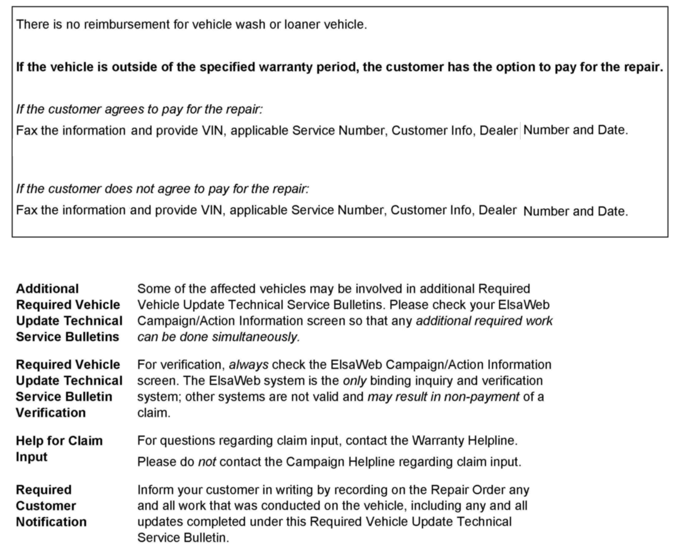 ^ Procedure must be performed on applicable vehicles in dealer inventory prior to sale.