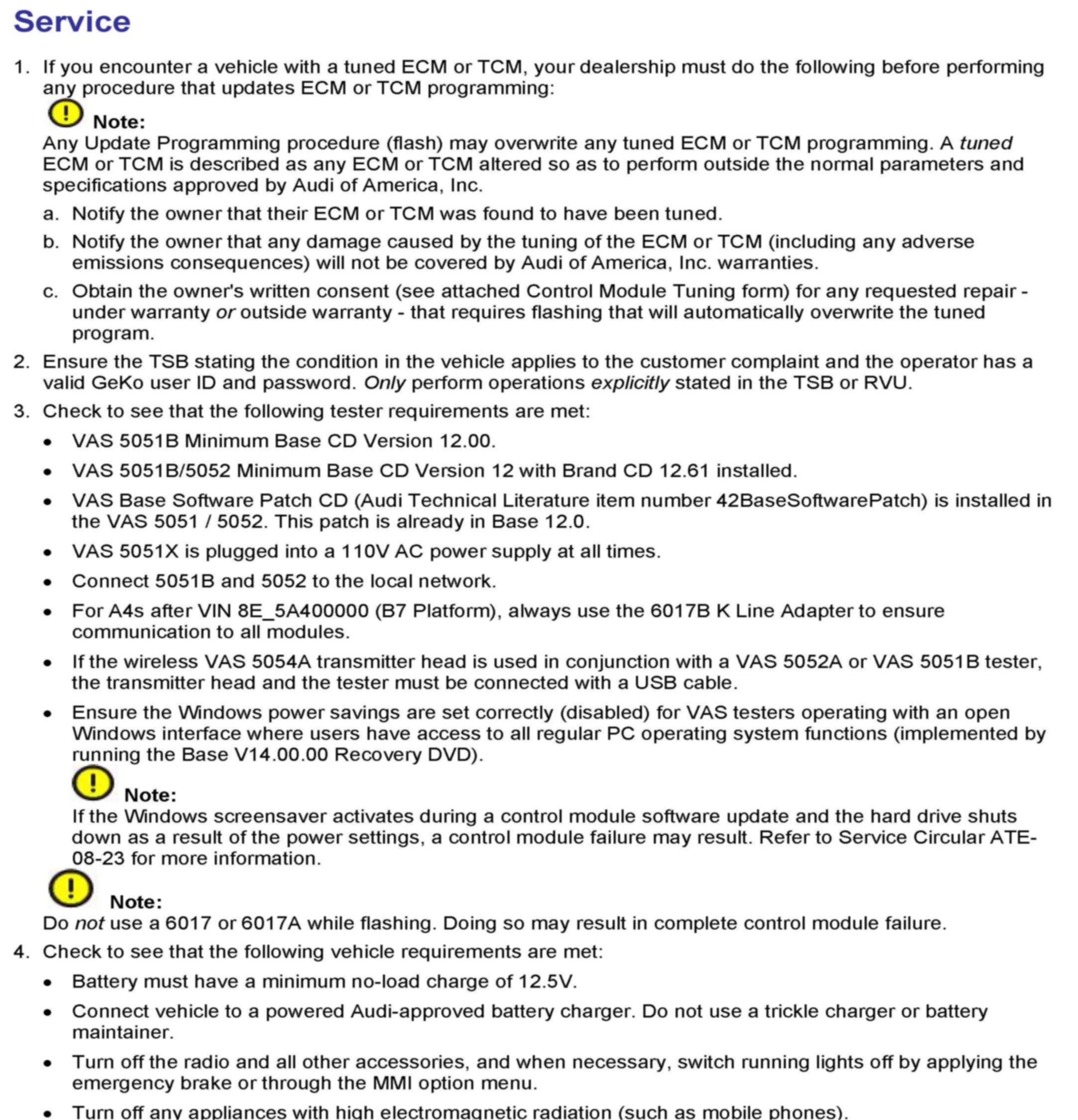 ^ Procedure must be performed within the allotted time frame stated in this Technical Service Bulletin.