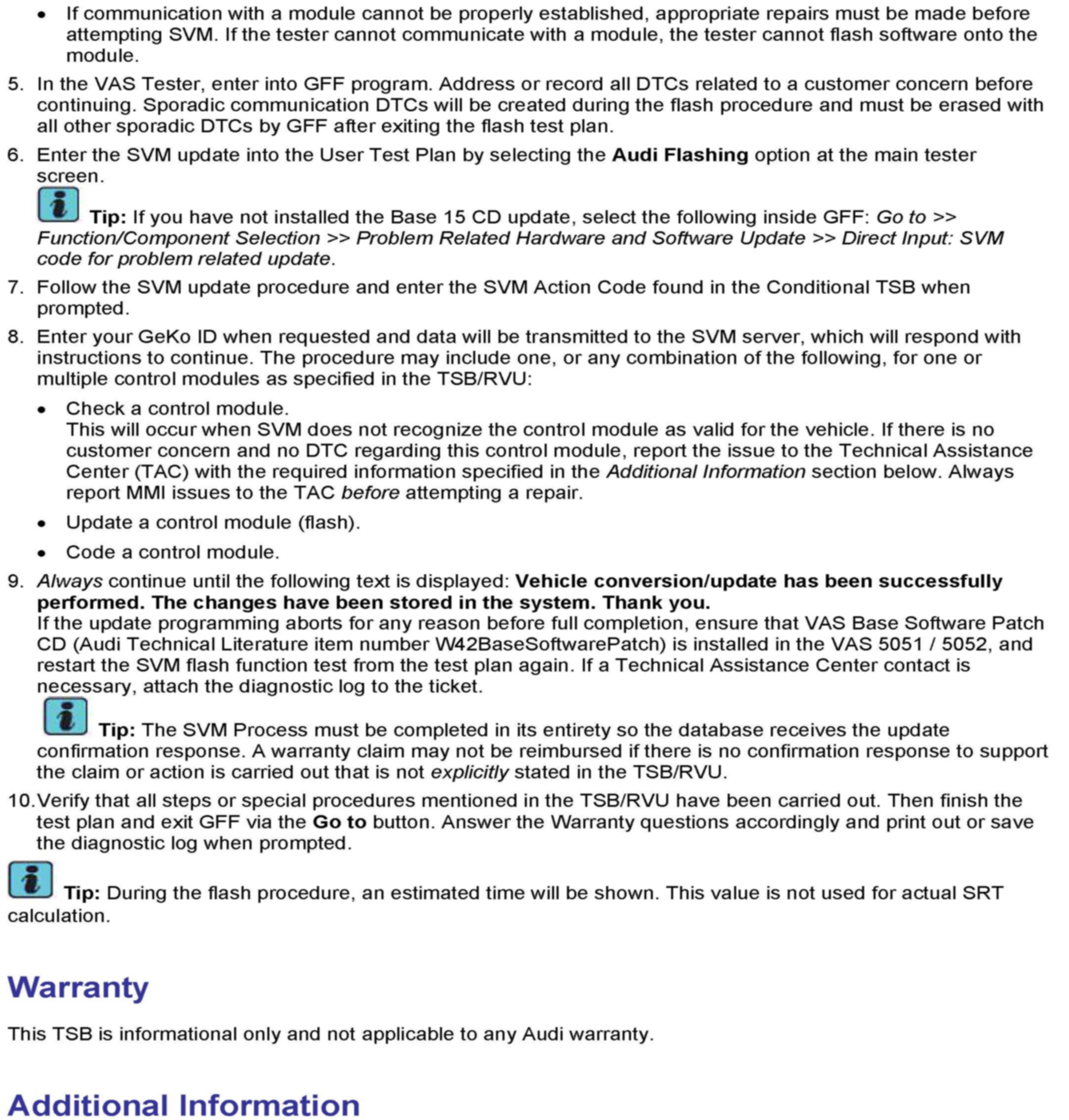 1. Follow all instructions in the attached TSB 2011732 00 Software Version Management (SVM), operating instructions.