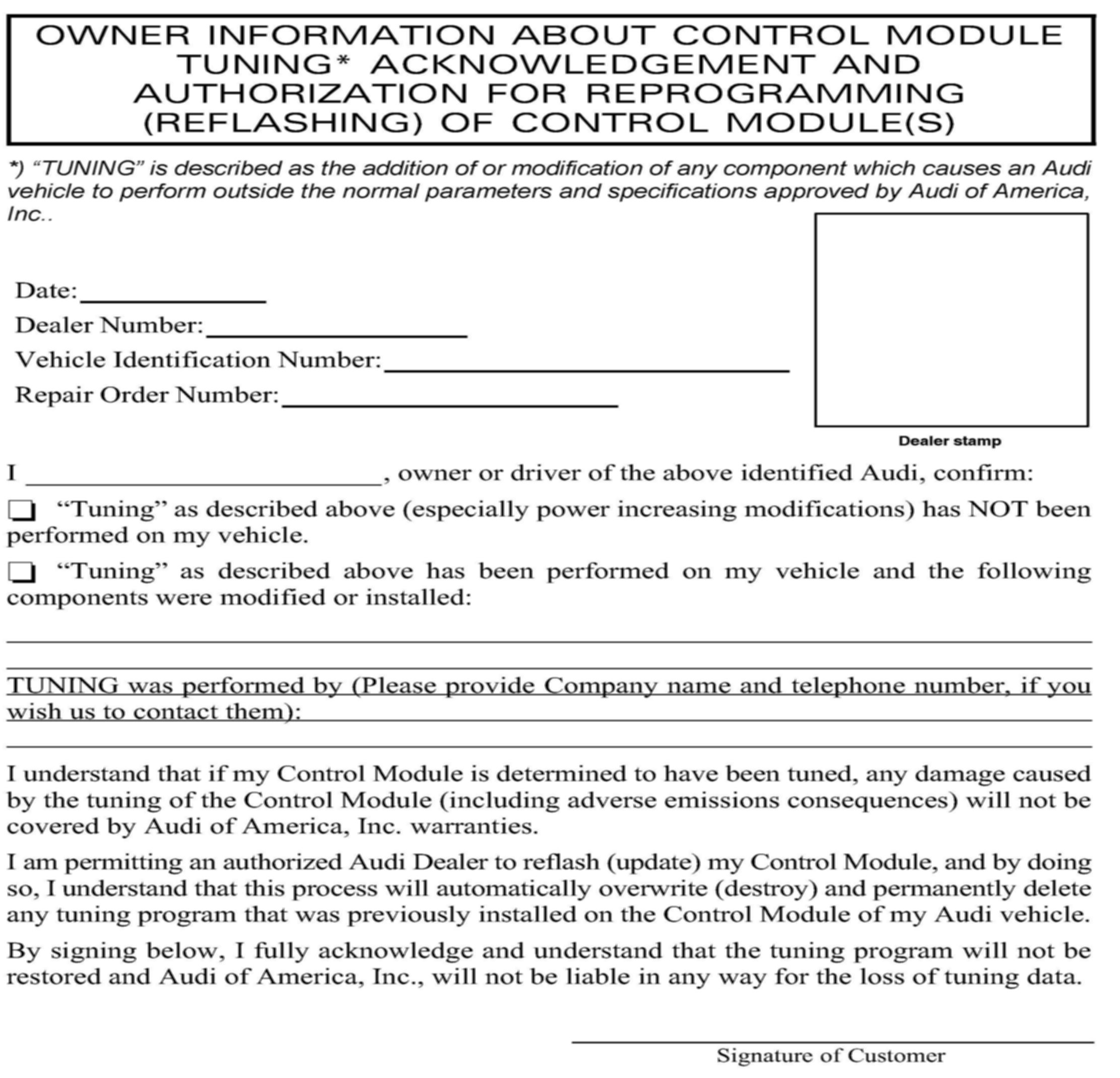 Tip: It is not necessary to receive a Repair Authorization to perform this or any other TDI clean diesel TSB.