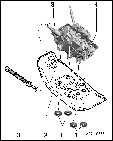 - Secure the noise insulation to the shift mechanism with four new lock washers - 1 -.