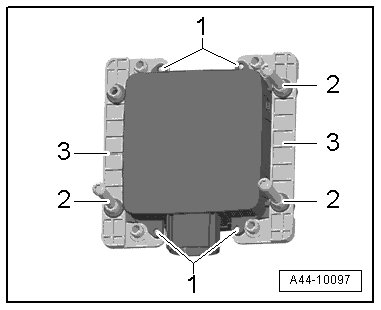 - Remove the bolts - 1 - and the frame from the adaptive cruise control sensor.