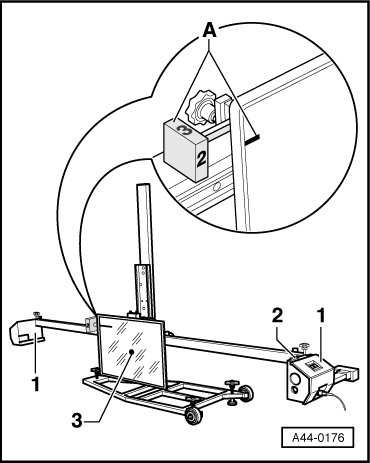 - Bring bubble levels - 2 - on (VAS 6190) into balance using adjustment screws - 1 -.