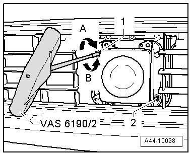 - Now align by sliding it sideways - arrows B - (VAS 6430) so that the laser beam is horizontally centered on the senor lens.