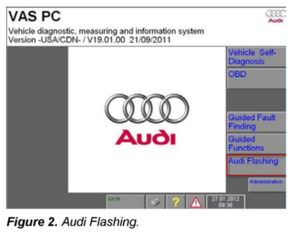 5. Enter the SVM code into the User Test Plan by selecting the Audi Flashing option at the main tester screen, unless otherwise directed by the TSB or TAC Helpline.