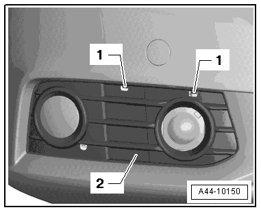 - Release the bracket - 1 - and remove the air intake grille - 2 -.