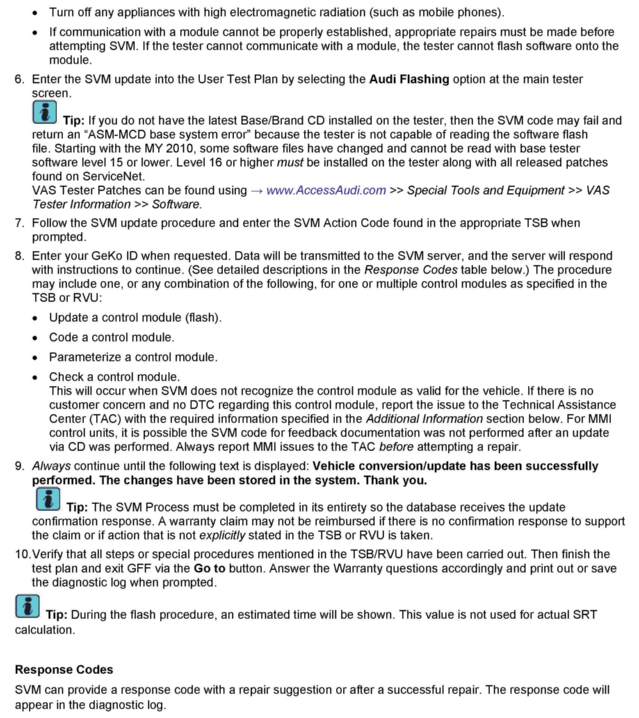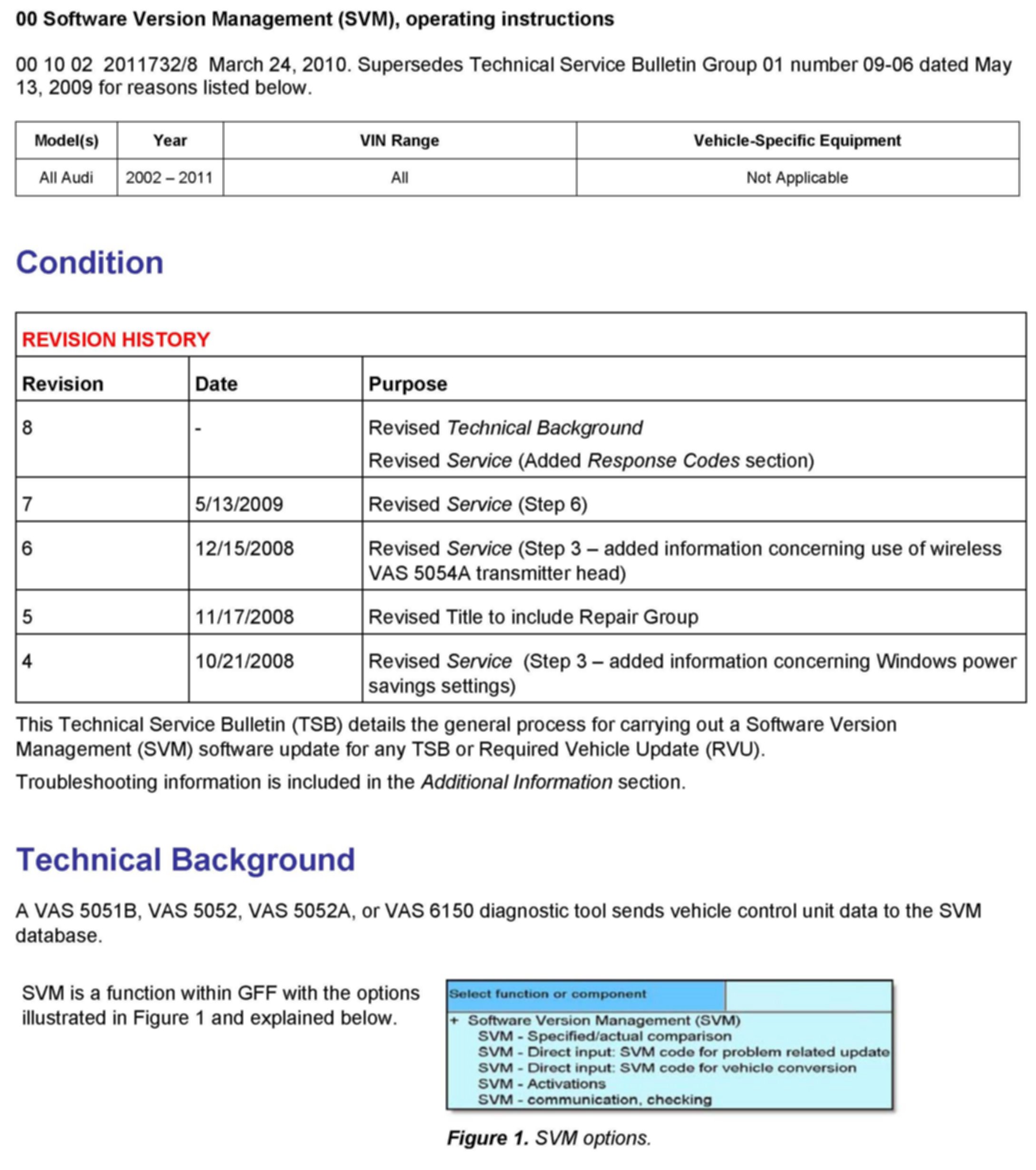 1. Follow all instructions in the attached TSB 2011732 00 Software Version Management (SVM), operating instructions.