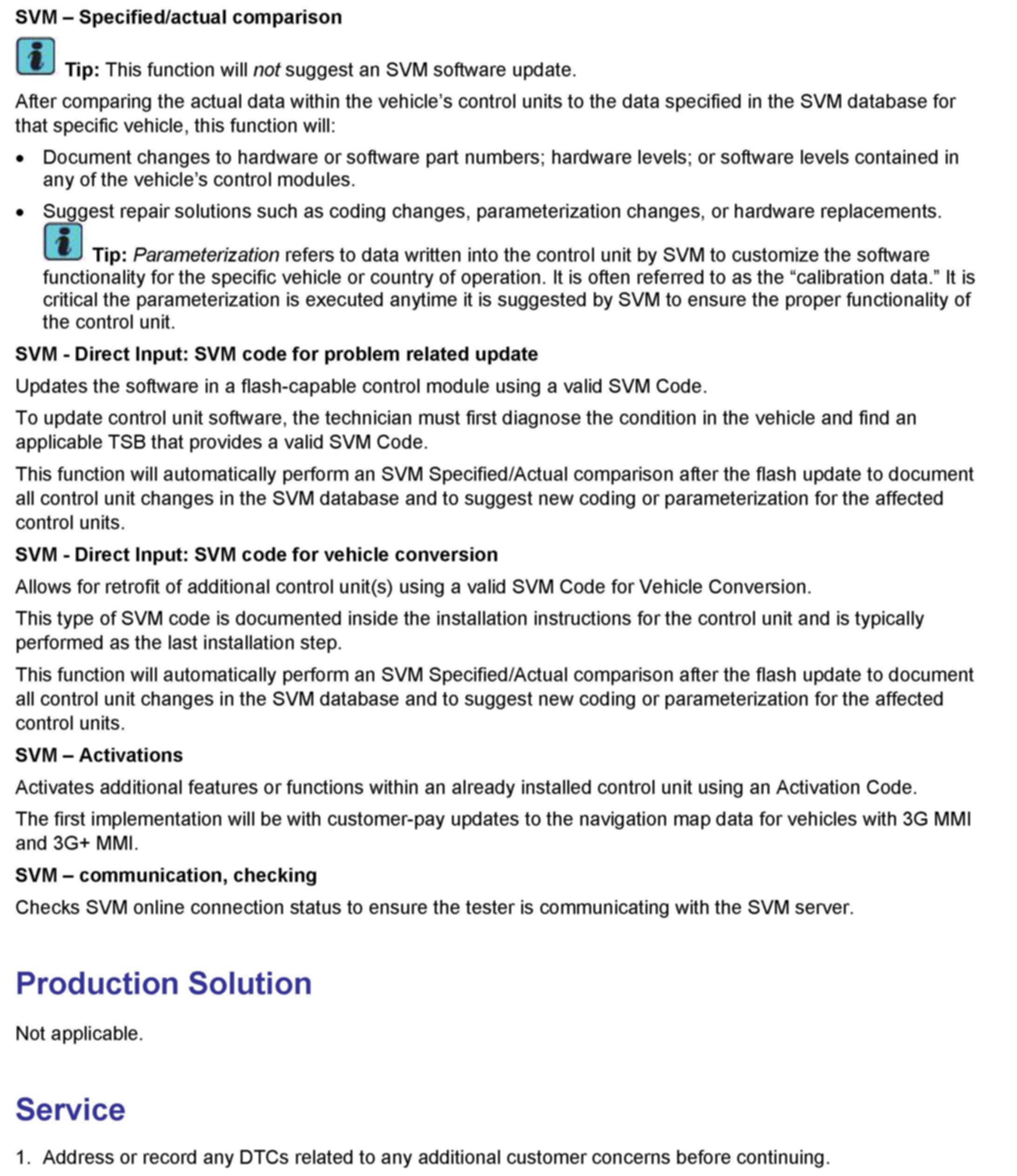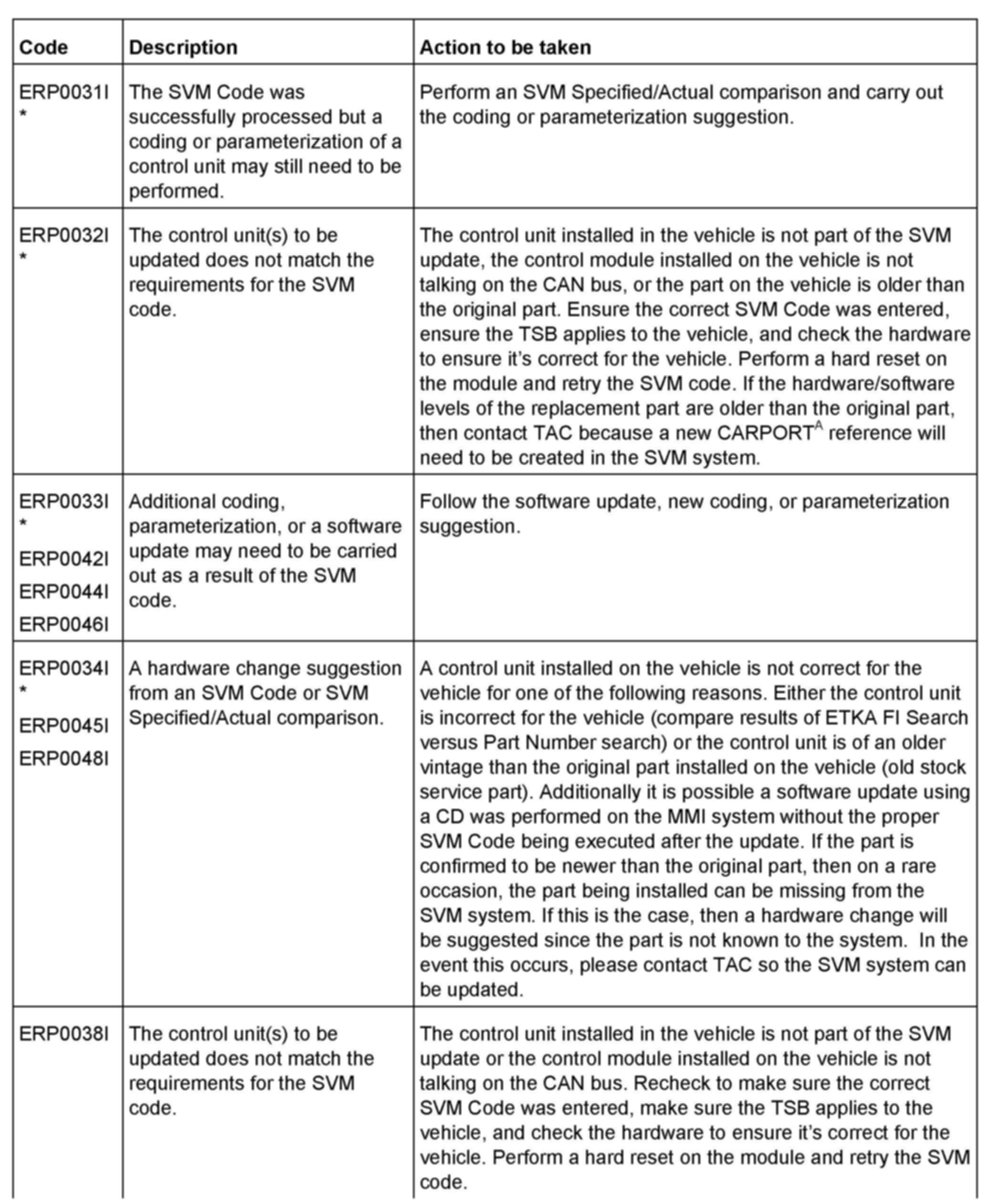 2. Update the ECM using the SVM action code as listed in the table above if necessary.