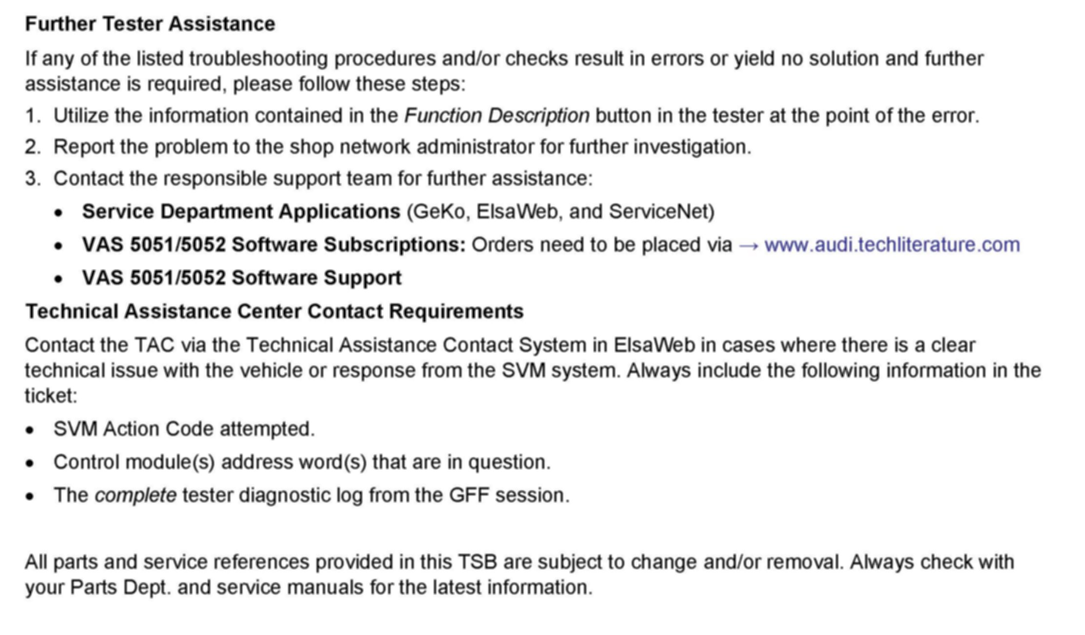 All parts and service references provided in this TSB are subject to change and/or removal. Always check with your Parts Department and service manuals for the latest information.