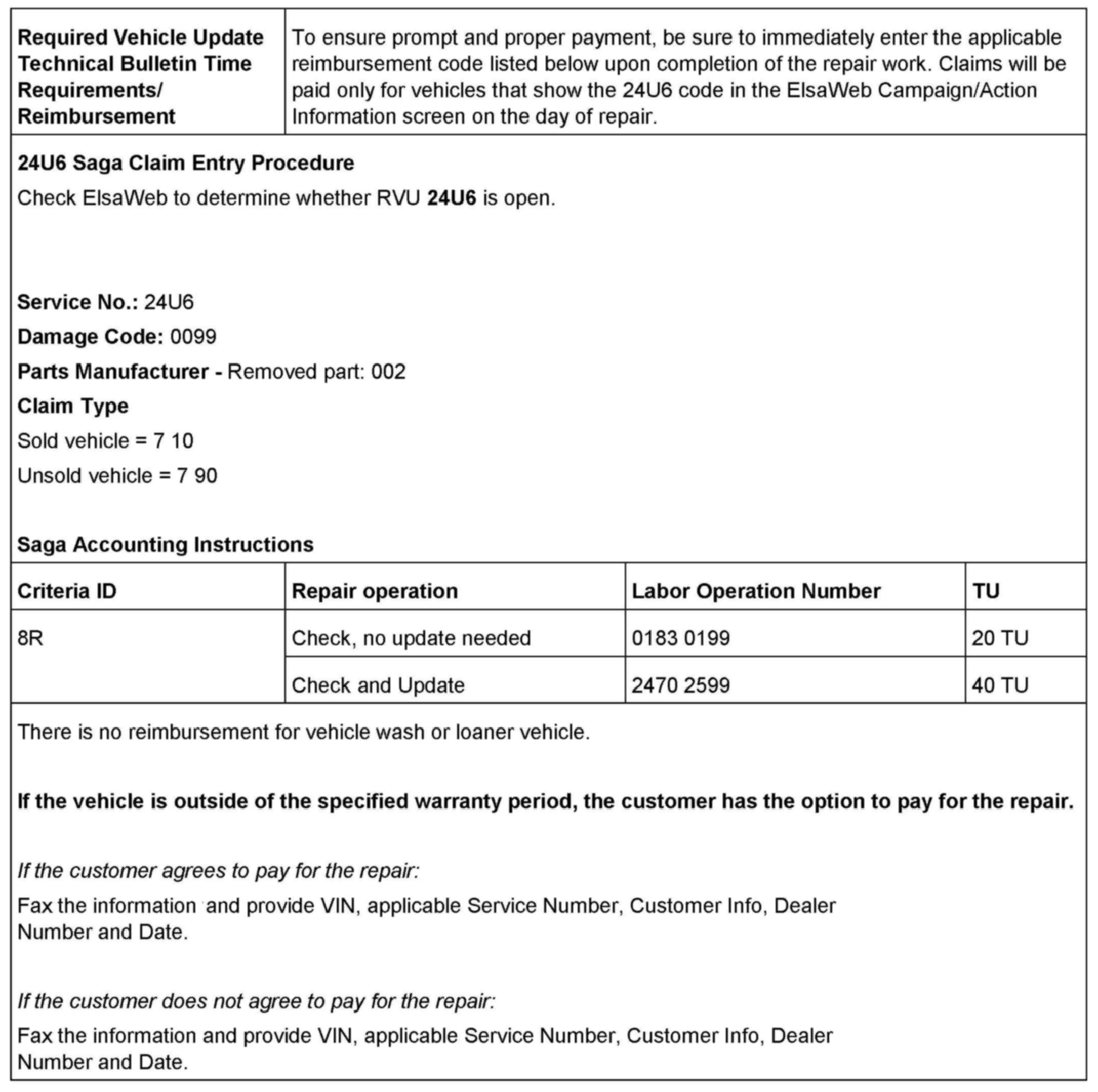 ^ Procedure is valid only for vehicles that show the 24U6 code in the ElsaWeb Campaign/Action Information screen on the day of repair.