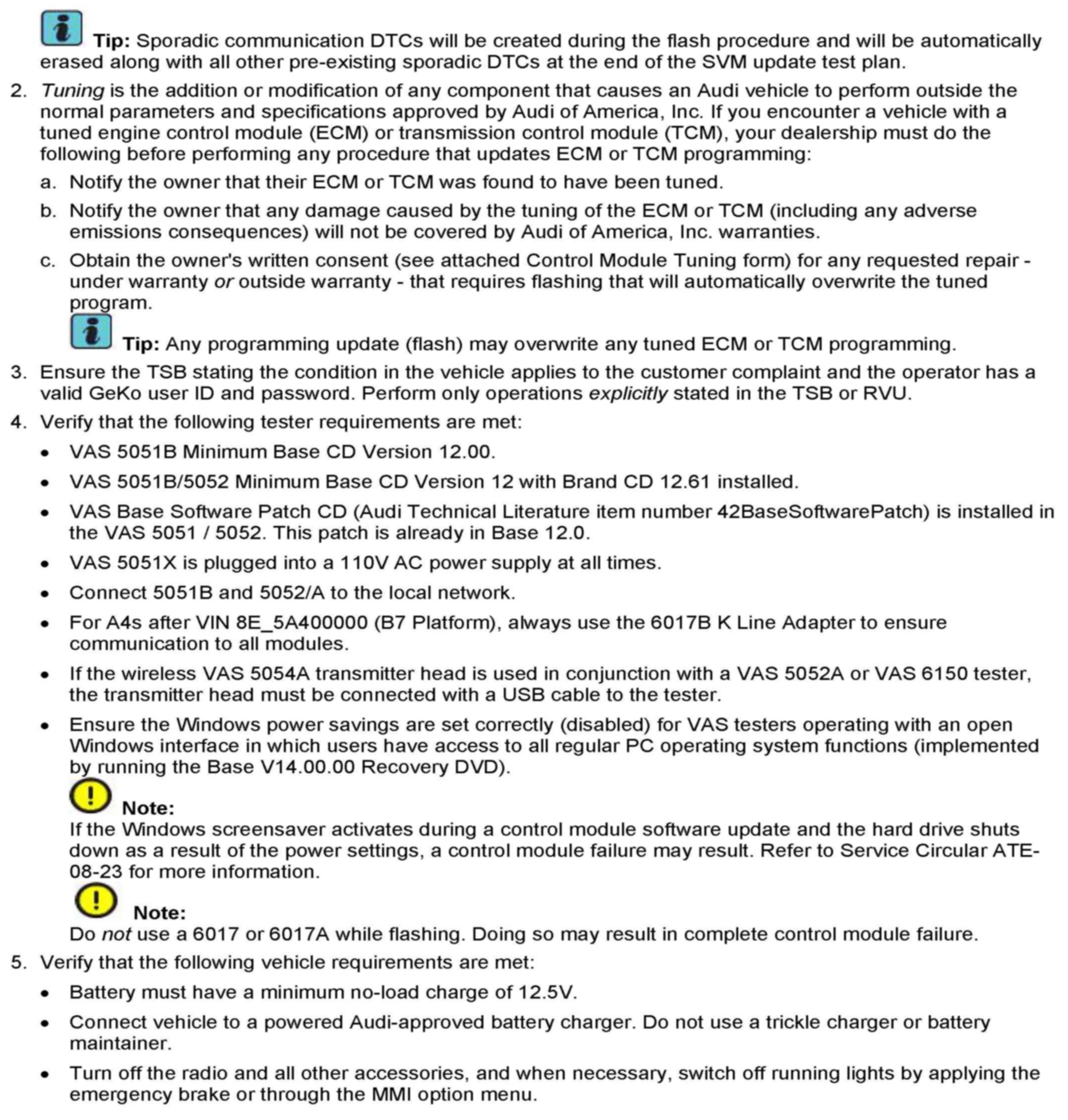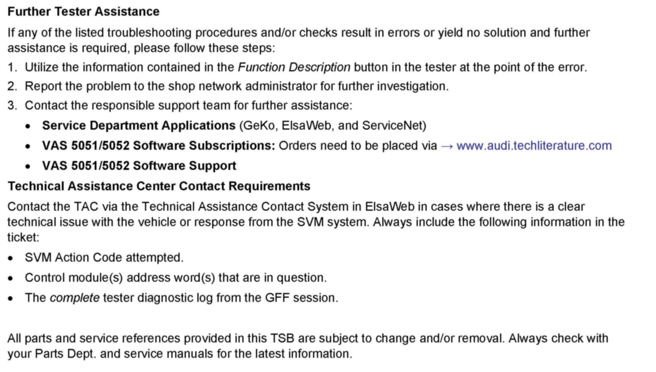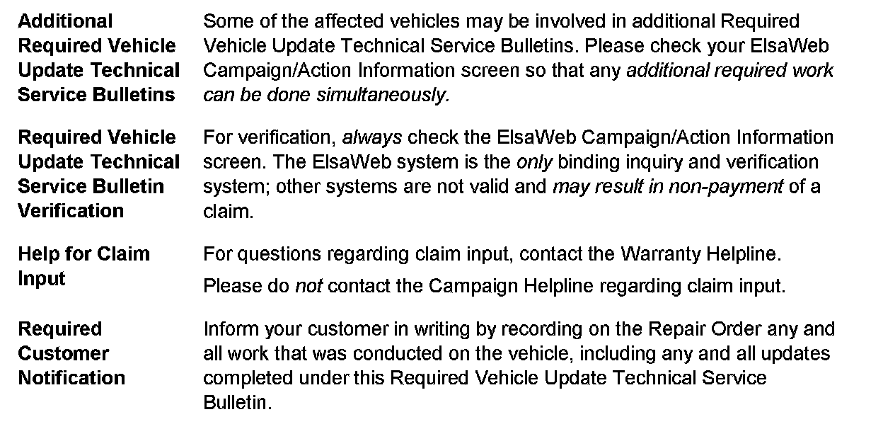 ^ Procedure must be performed within the allotted time frame stated in this Technical Service Bulletin.