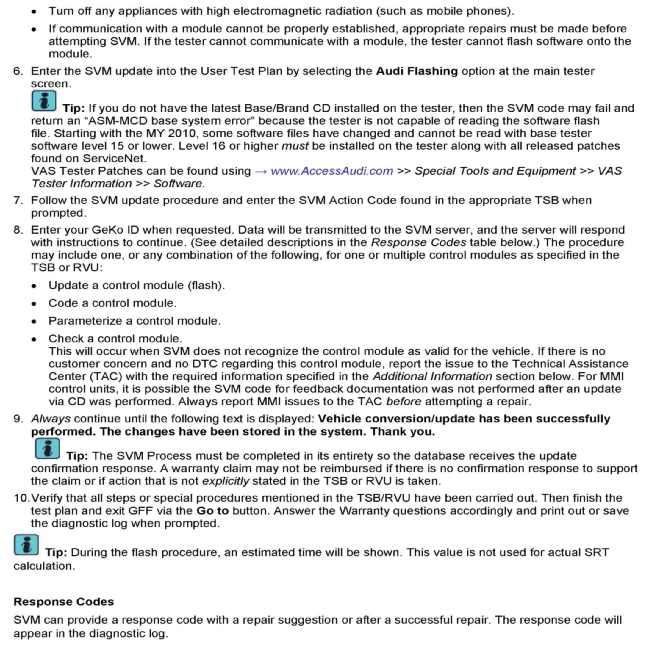 1. Follow all instructions in the attached TSB 2011732 00 Software Version Management (SVM), operating instructions.