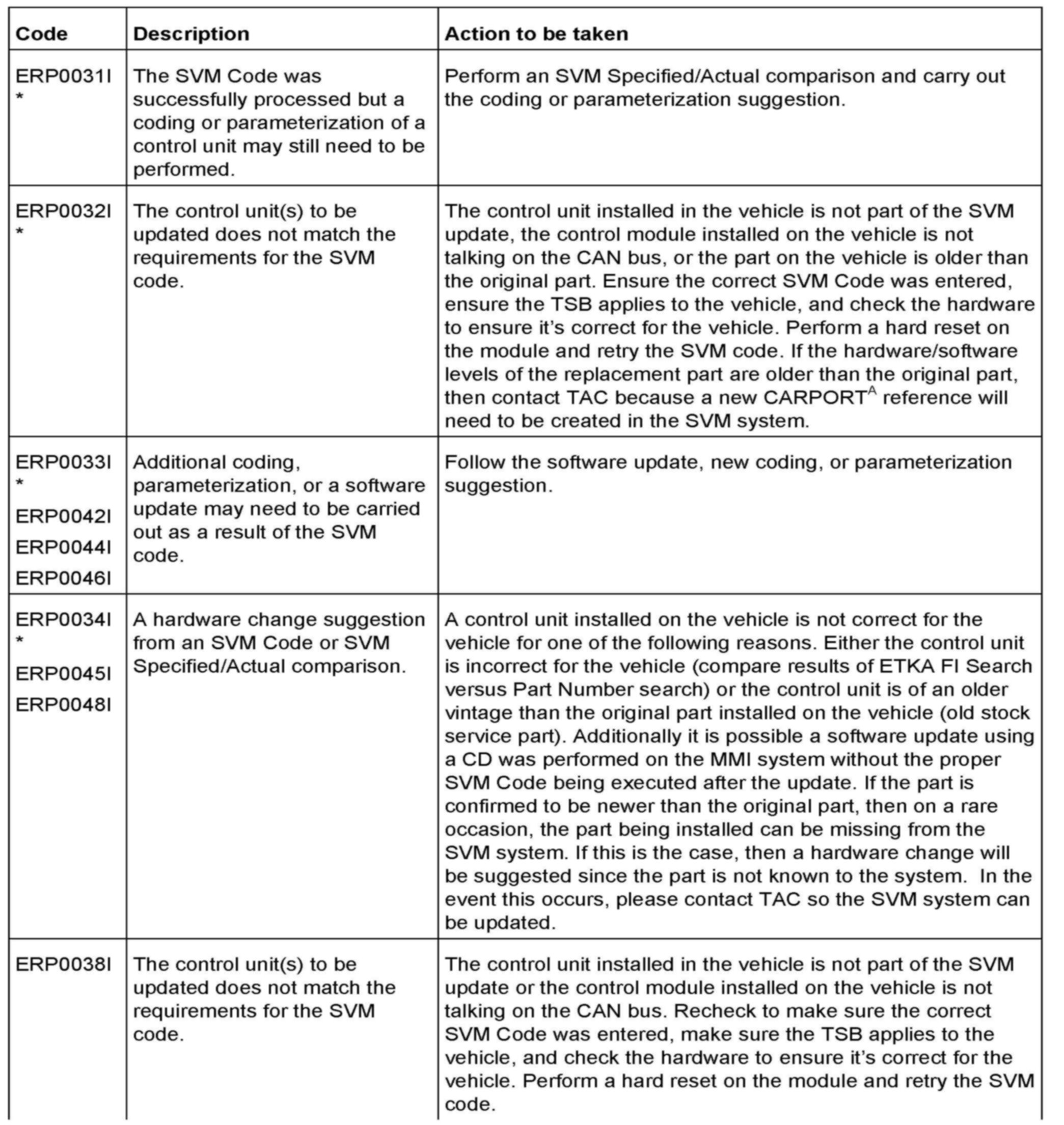 2. Update the instrument cluster (J285) using the SVM action code as listed in the table above if necessary.