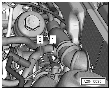 • Remove fuel injector 2 to reach the bolt for the knock sensor (KS) 1 (G61) - 4 -.
