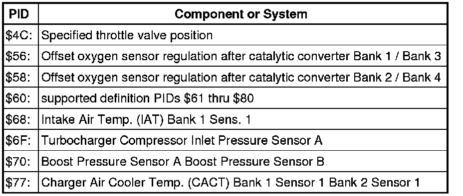 - From the following table, select the desired the "PID" that is to be monitored, e.g. "PID $05 Coolant temperature".
