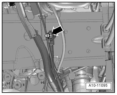 - Tighten the nut - 2 - for the hydraulic oil hose bracket - 1 - to 9 Nm.