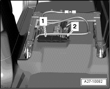 - Remove both front screws - 1 - on driver's seat console and tip console - 2 - up.