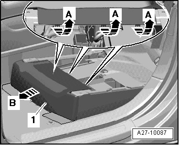 - Then remove cover in - direction of arrow B - from driver's seat console.