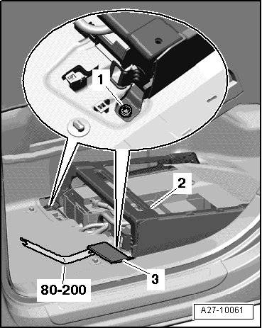 - Remove the ground (GND) wire - 3 - to battery from Energy Management Control Module (J644).