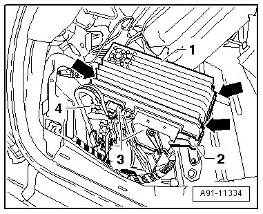 - Disconnect the MOST bus connector - 4 - from the digital sound system control module - 1 -.