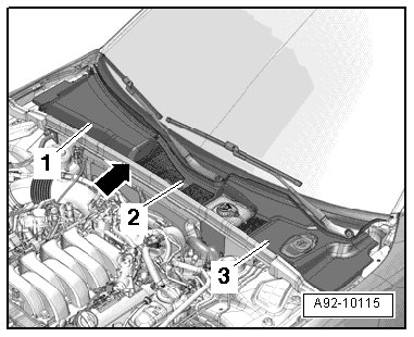 - Unclip the plenum chamber cover - 1 through 3 - and remove it.