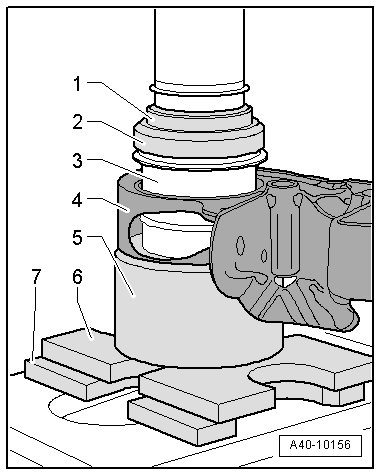 • Pressing bearings out and in is performed using (V.A.G 1290 A).