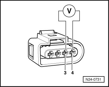 - Using a multimeter, check the Oxygen Sensor (O2S) Behind Three Way Catalytic Converter (TWC) (G130) electrical harness connector terminals 3 to 4 for voltage.