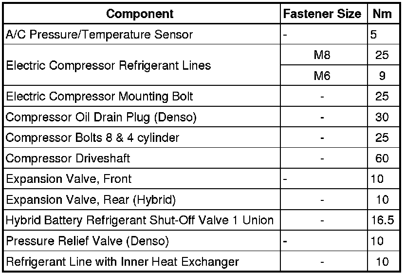 Fastener Tightening Specifications