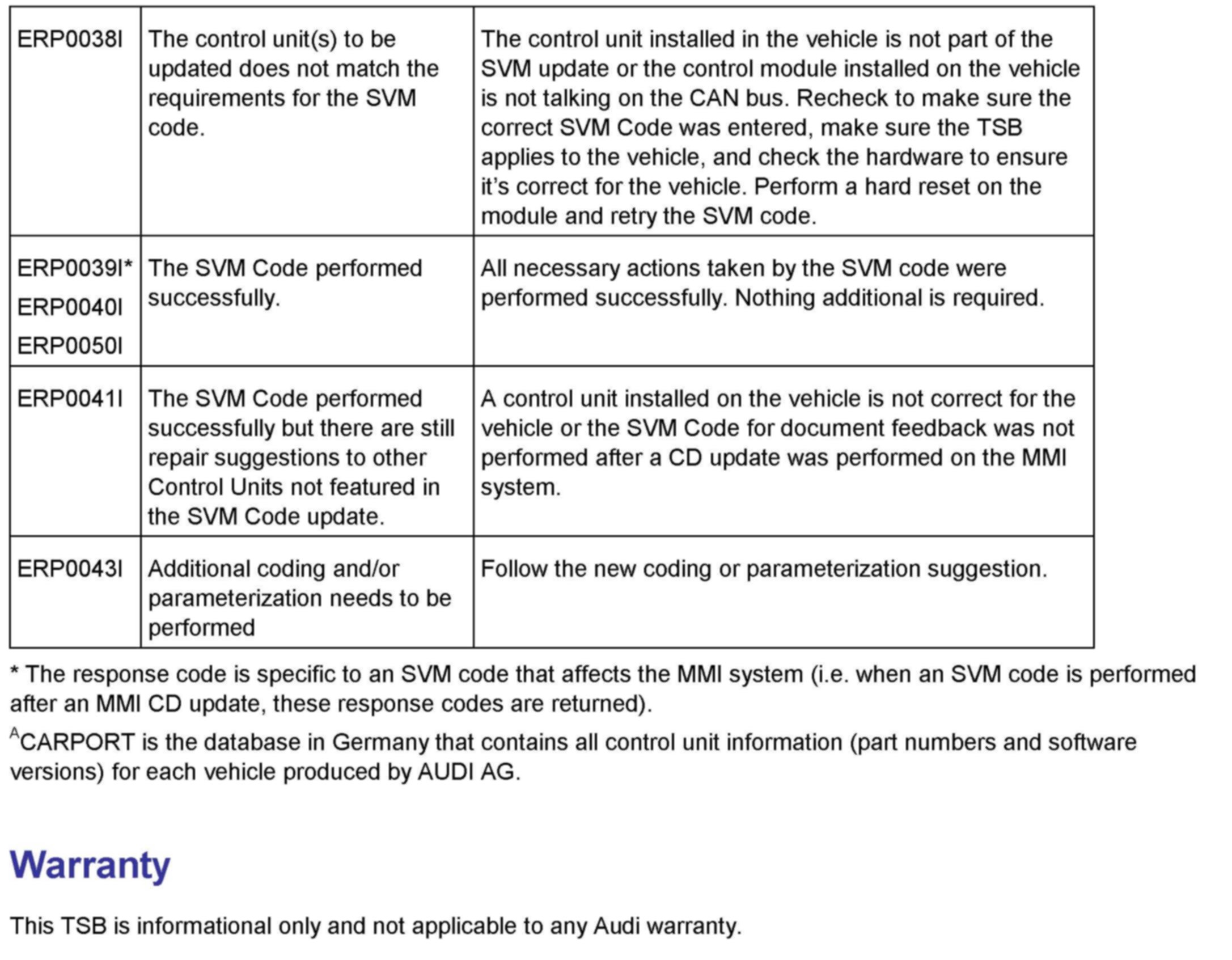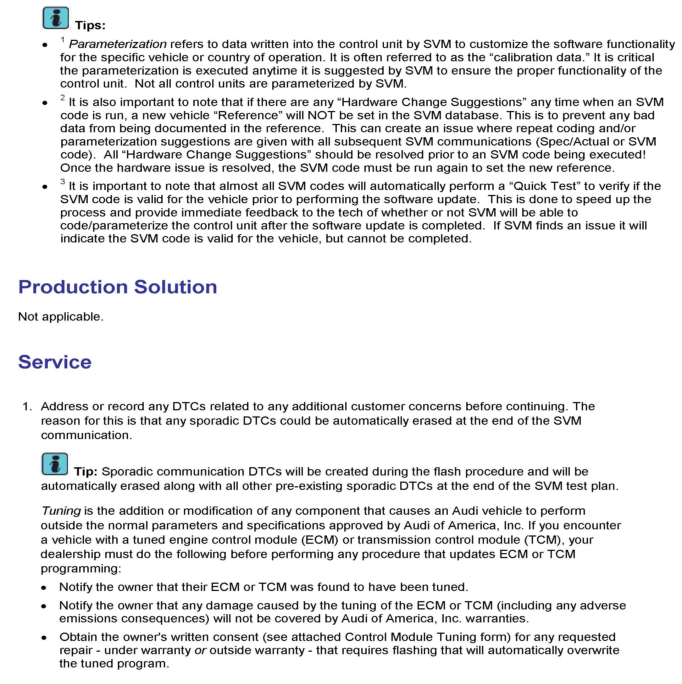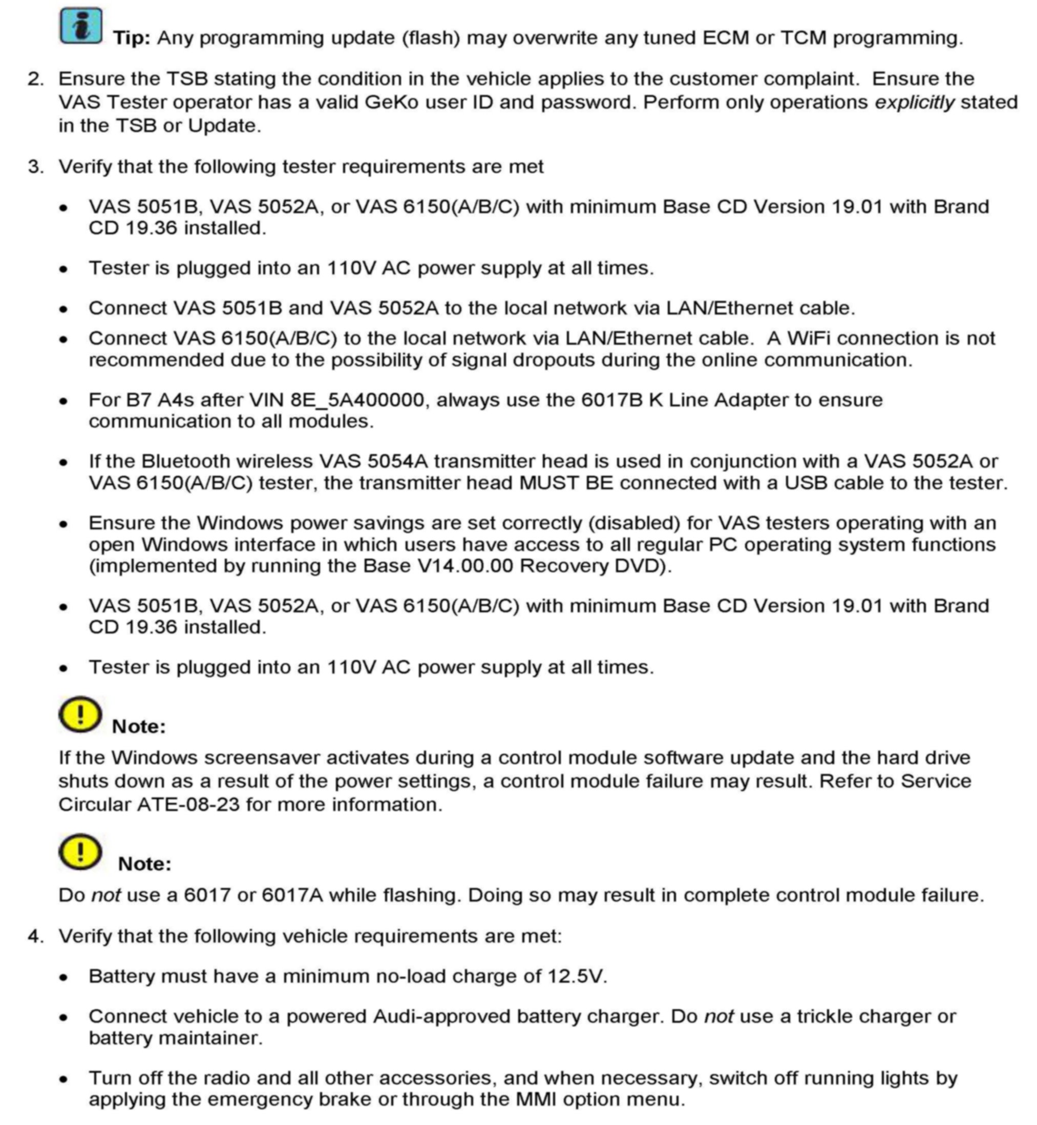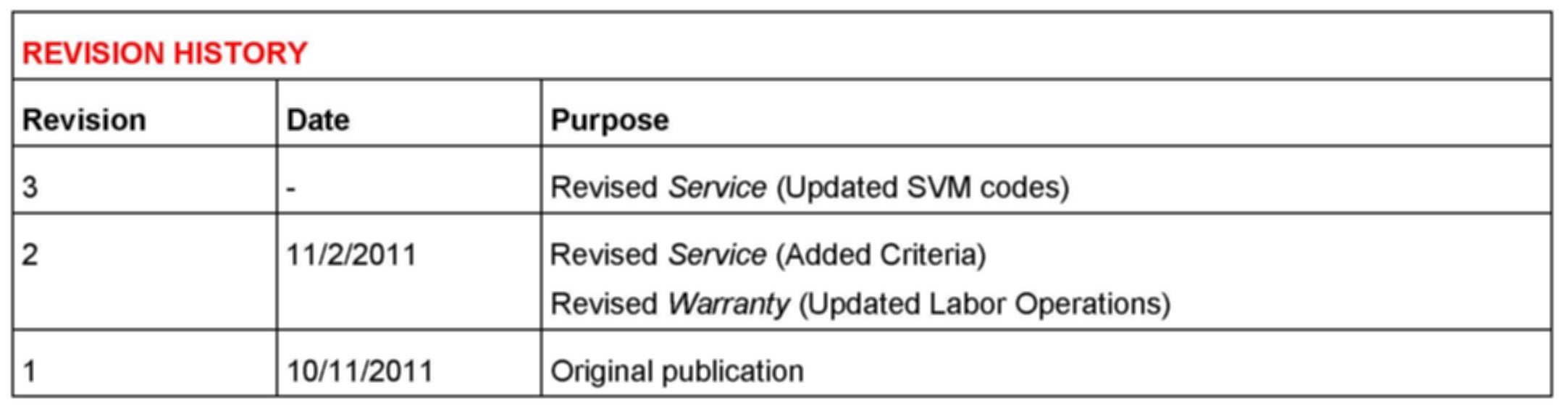 ^ Procedure must be performed within the allotted time frame stated in this Technical Service Bulletin.