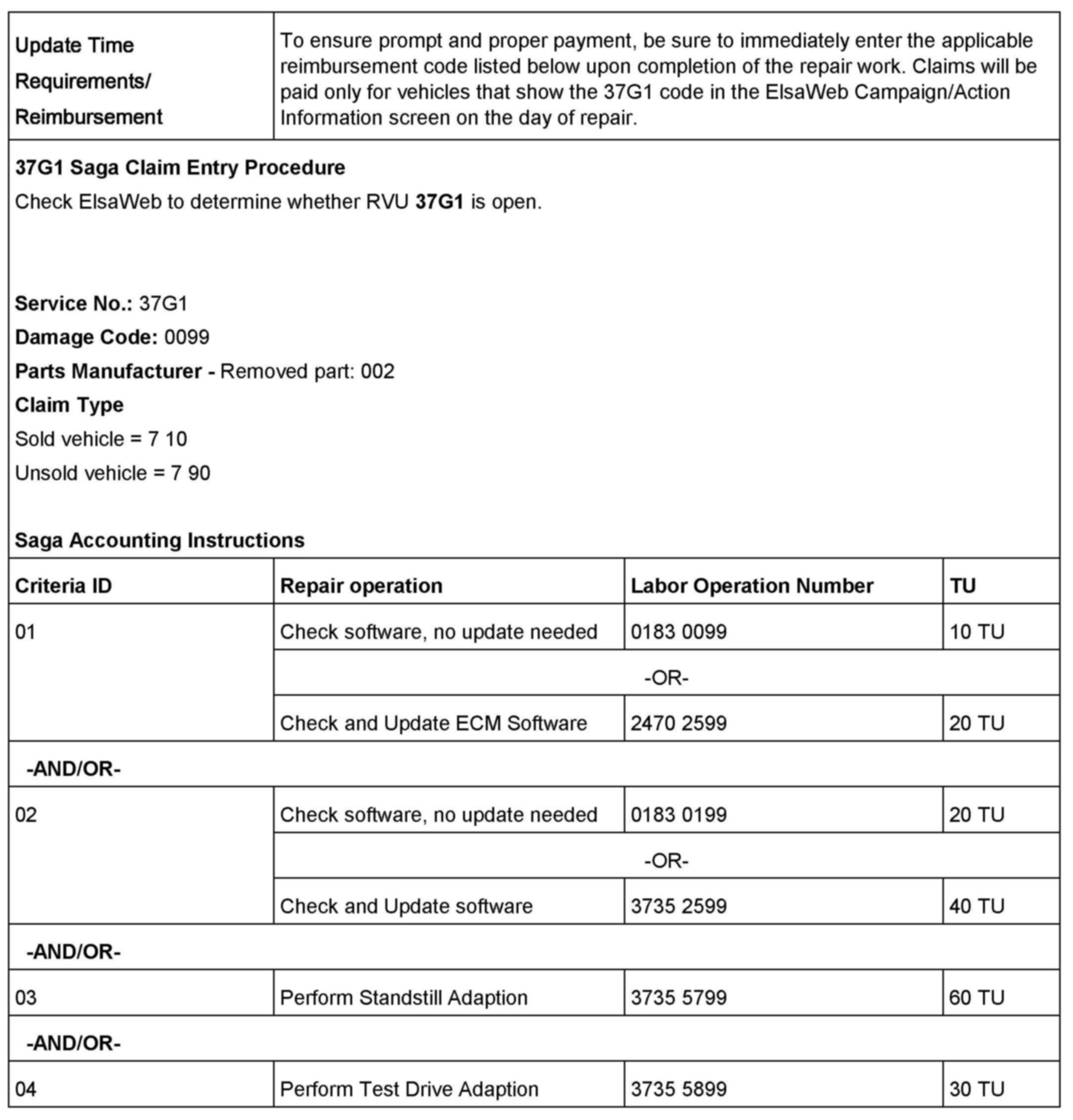 ^ Procedure is valid only for vehicles that show the 37G1 code in the ElsaWeb Campaign/Action Information screen on the day of repair.
