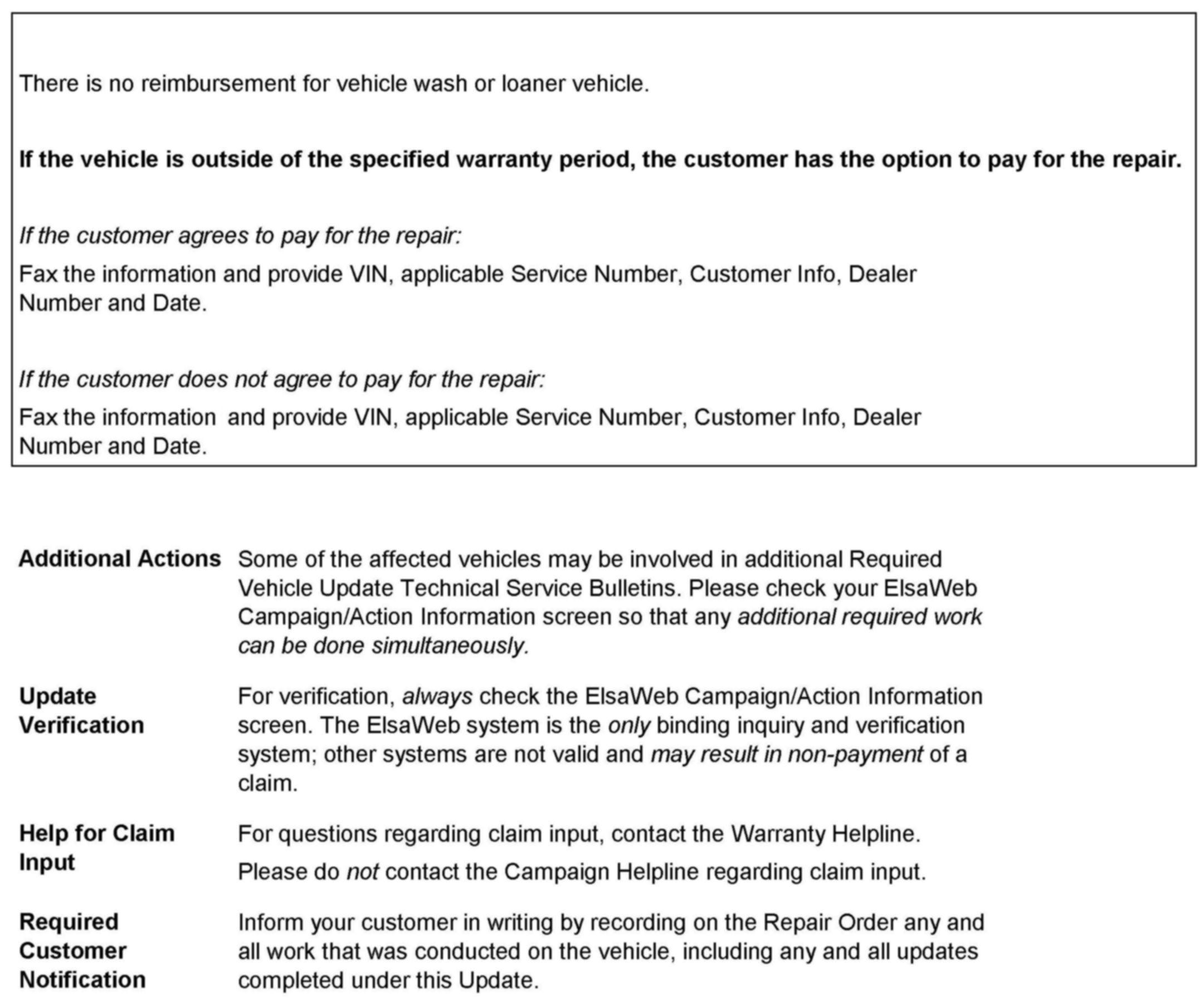 ^ Procedure must be performed on applicable vehicles in dealer inventory prior to sale.