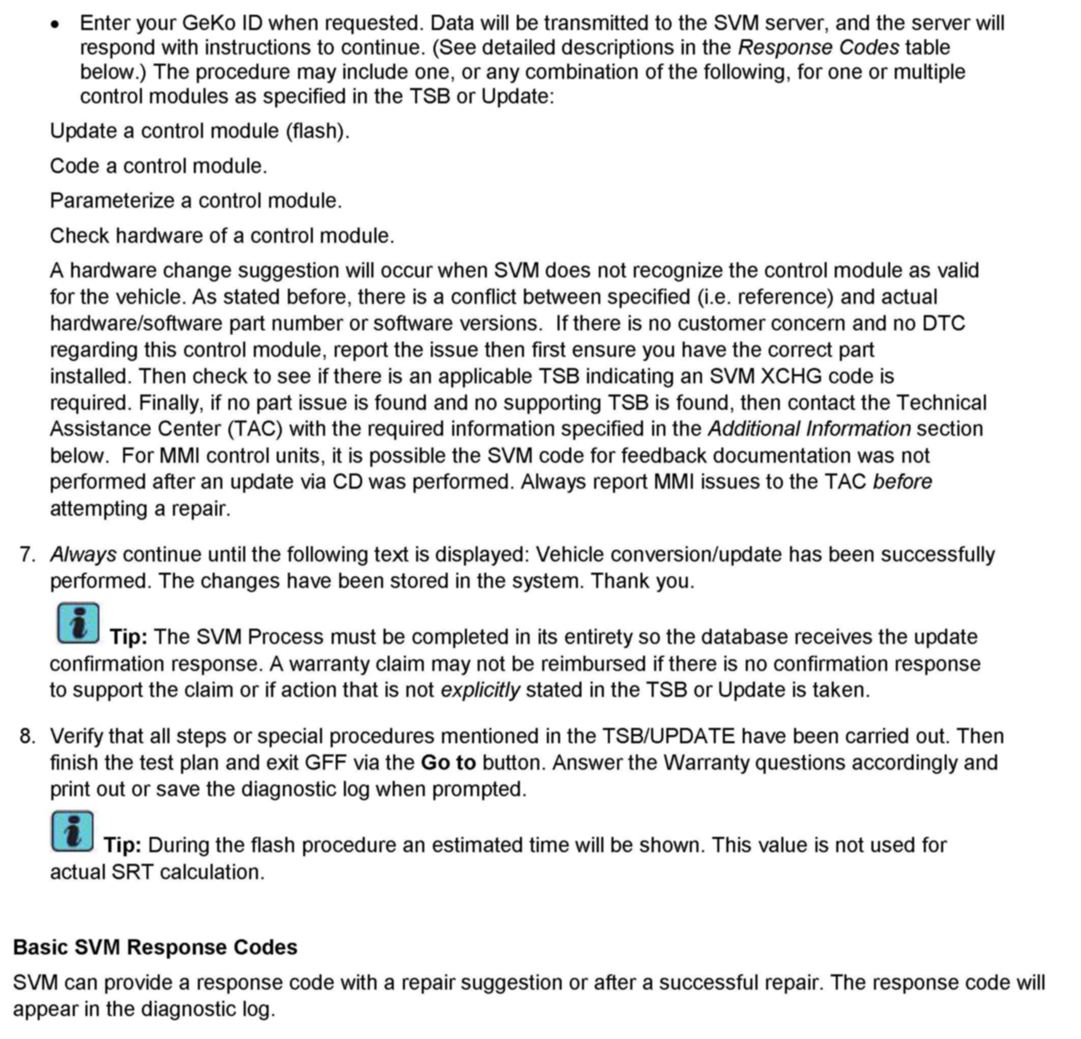 ^ TSB 2011732 00 Software Version Management (SVM), operating instructions.
