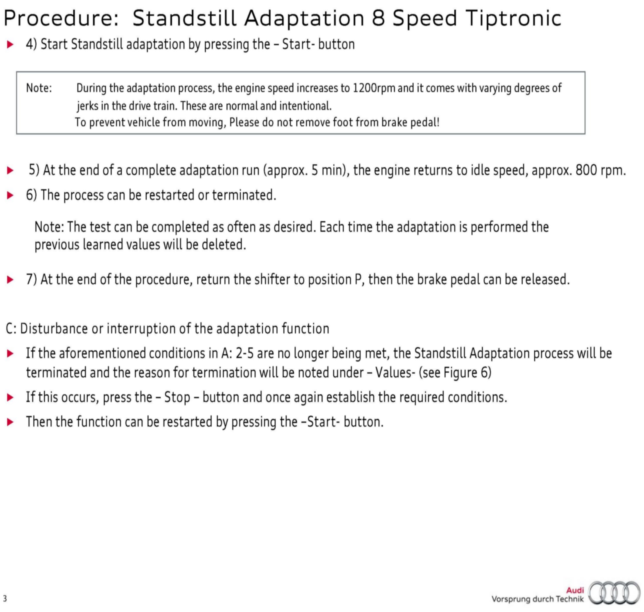 Standstill Adaptation 8 Speed Tiptronic Transmissions