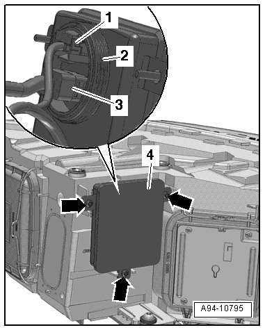 - Disconnect the adapter wire - 3 - and connector - 1 - on the HID headlamp control module.
