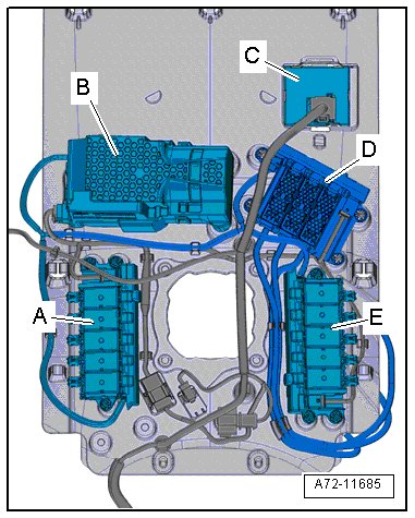 - Remove the control module - C - for the seat adjustment. Refer to => [ Driver Side Rear Seat Adjustment Control Module J876/Passenger Side Rear Seat Adjustment Control Module J877 ] Driver Side Rear Seat Adjustment Control Module J876/Passenger Side Rear Seat Adjustment Control Module J877.