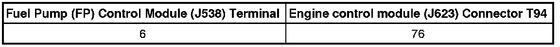 - Using a Multimeter, check the Fuel Pump (FP) Control Module (J538) wiring harness to the Engine control module (J623) , connector T94 for resistance.