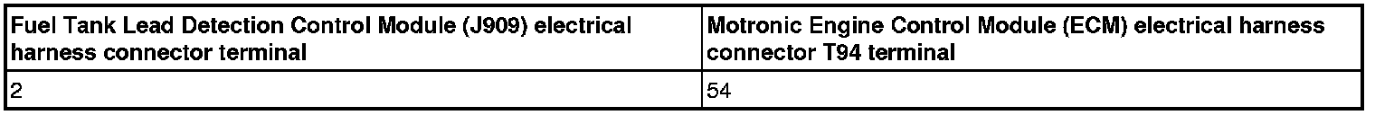 - Using a Multimeter, Check the Fuel Tank Lead Detection Control Module (J909) electrical harness connector to the Motronic Engine Control Module (ECM) electrical harness connector T94 for an open circuit.