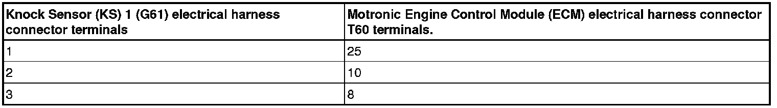- Using a Multimeter, Check the Knock Sensor electrical harness connector to the Motronic Engine Control Module (ECM) (J623) electrical harness connector T60 for an open circuit.