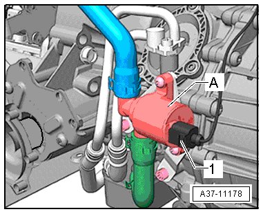 • Installed location: The transmission fluid cooling valve - A - is mounted on the left side of the transmission.