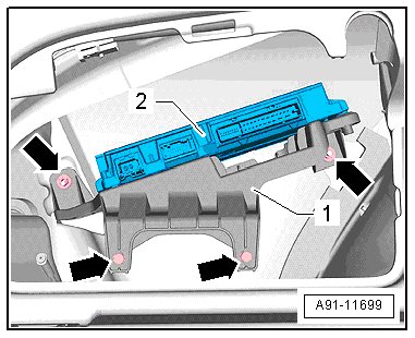 - Remove the screws - arrows - and remove the digital sound system control module - 1 - from the bracket - 2 -.