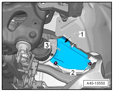 - Remove the nuts - 1 - and bolts - 2 - and remove the heat shield upper section - 3 -.