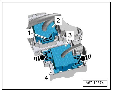 - Release the retaining clips - arrows - and press the relay carrier - 3 - back and out of the bracket - 4 -.
