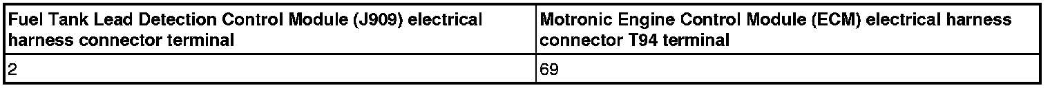 - Using a Multimeter, Check the Fuel Tank Lead Detection Control Module (J909) electrical harness connector to the Motronic Engine Control Module (ECM) electrical harness connector T94 for an open circuit.