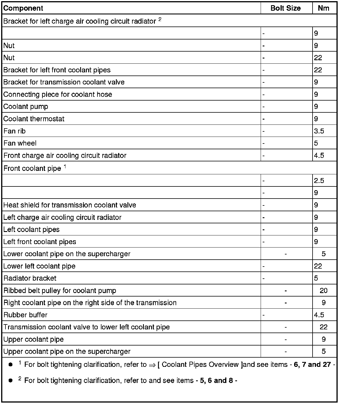 Charge Air Cooling Pump (V188) , Tightening Specifications