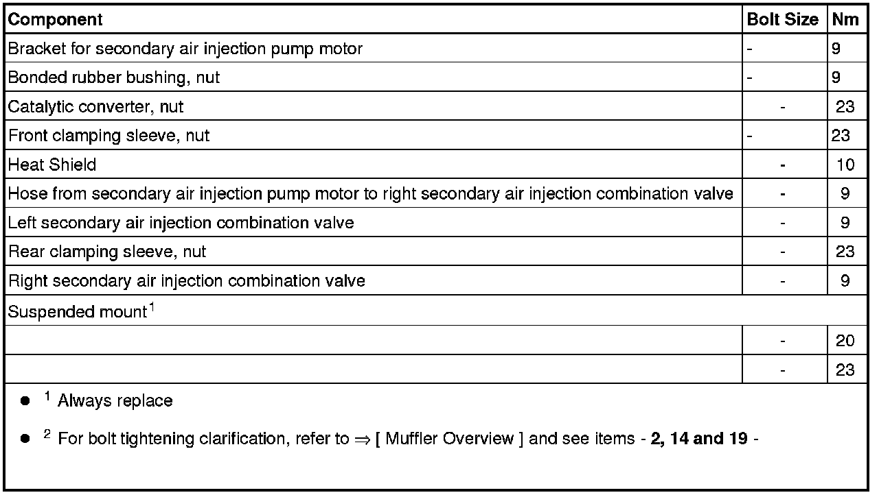 Secondary Air Combination Valve Heat Shield - Tightening Specification