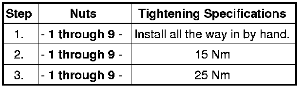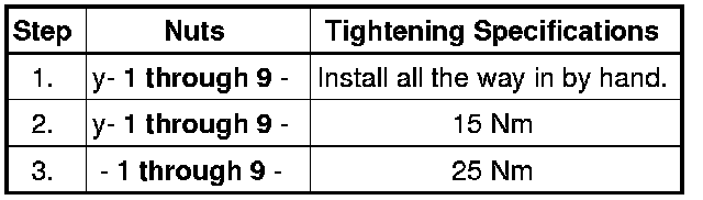 - Tighten the nuts in 3 steps according to the tightening sequence: